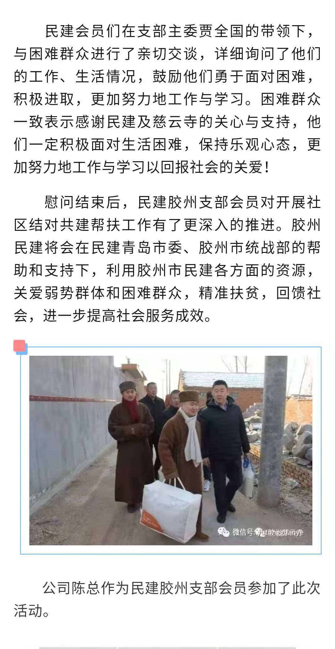 青岛民间胶州支部走访慰问困难群众