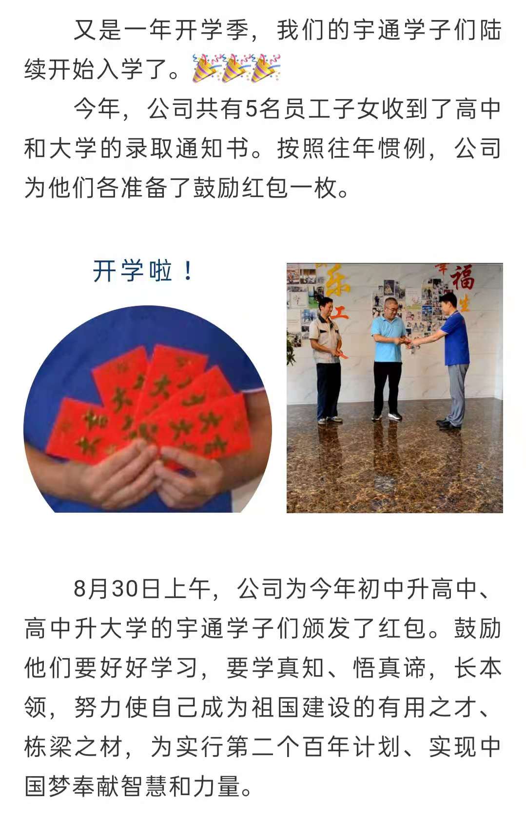 为员工子女发放鼓励红包